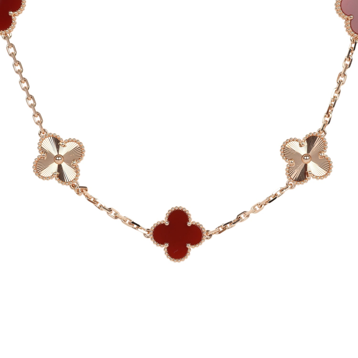 Van Cleef & Arpels Vintage Alhambra 20 Motif Long Necklace Carnelian & 18K Rose Gold Hardware