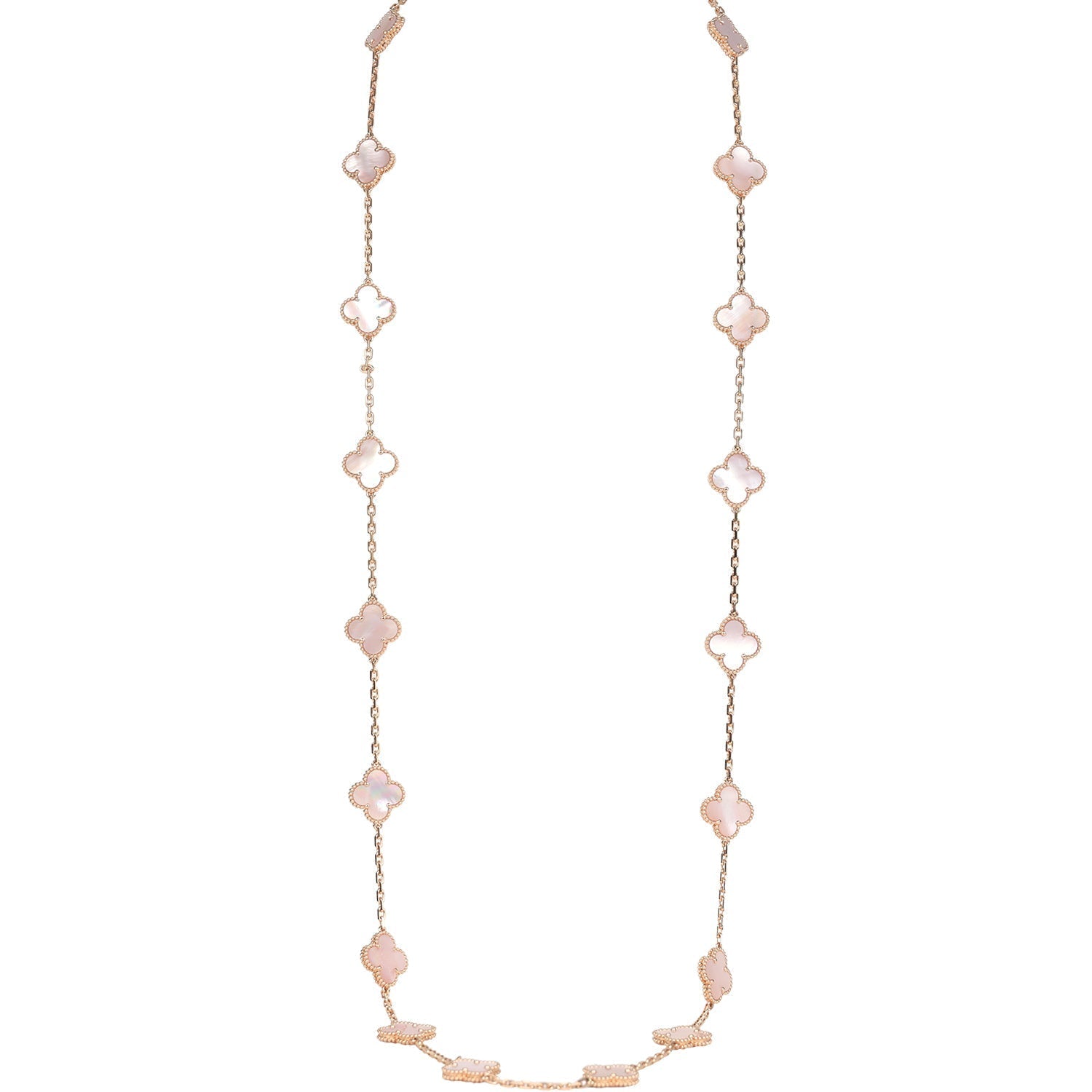 Van Cleef & Arpels Vintage Alhambra 20 Motif Long Necklace Pink Mother of Pearl and 18K Rose Gold