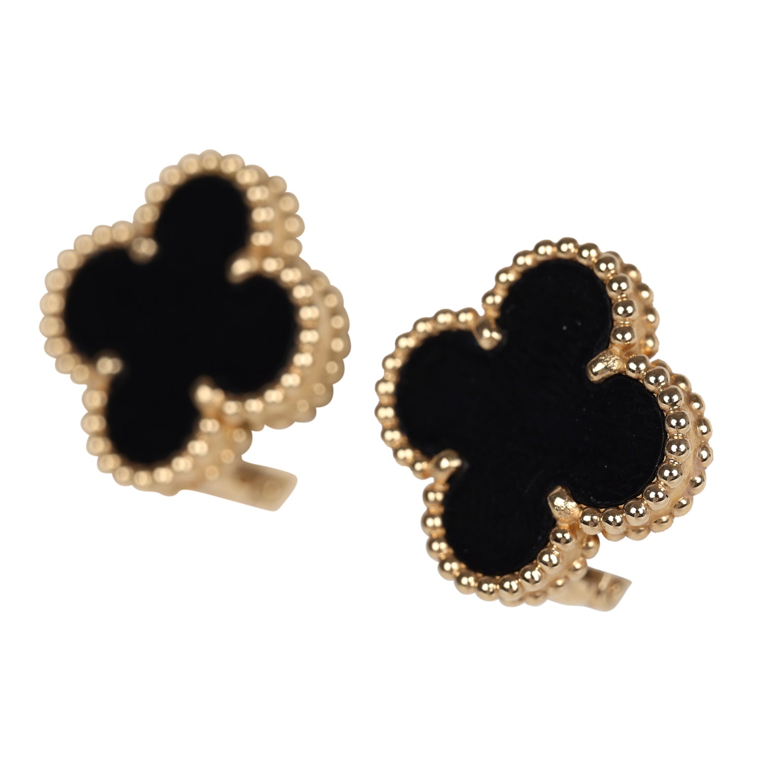 Van Cleef & Arpels Vintage Alhambra Onyx Earrings 18K Gold