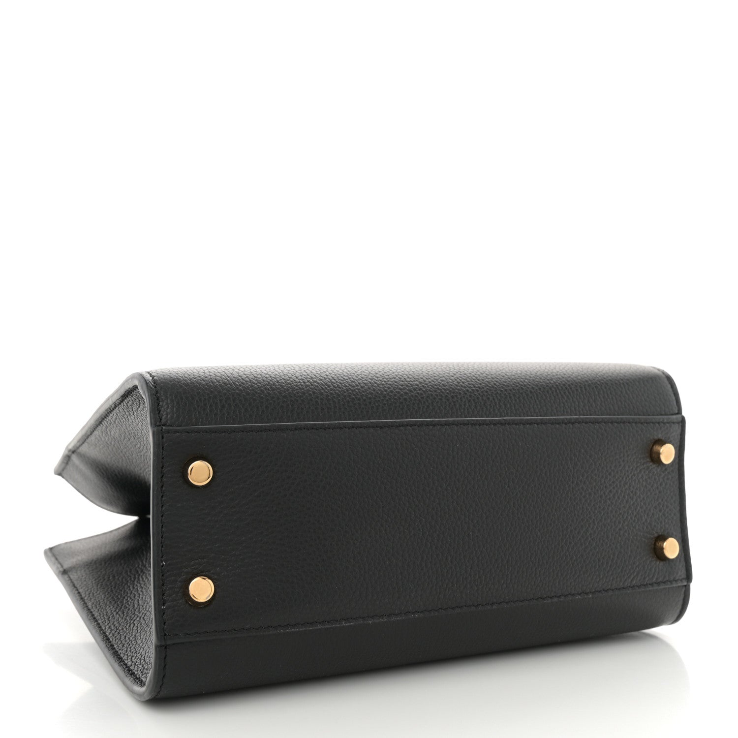 Grained Calfskin Snakeskin Embossed Virtus Top Handle Tote Black