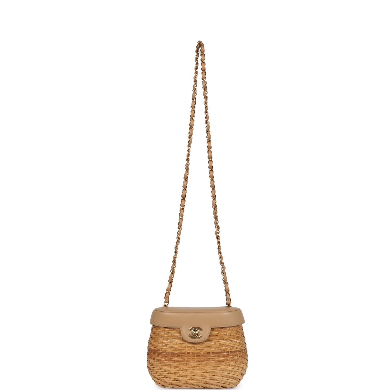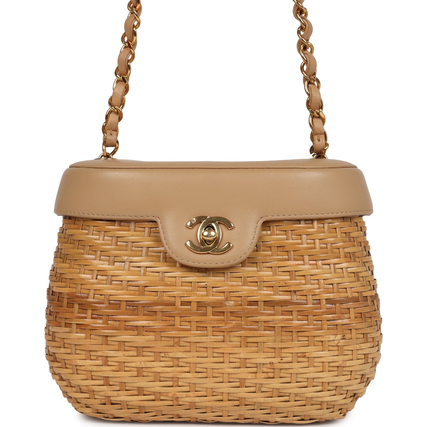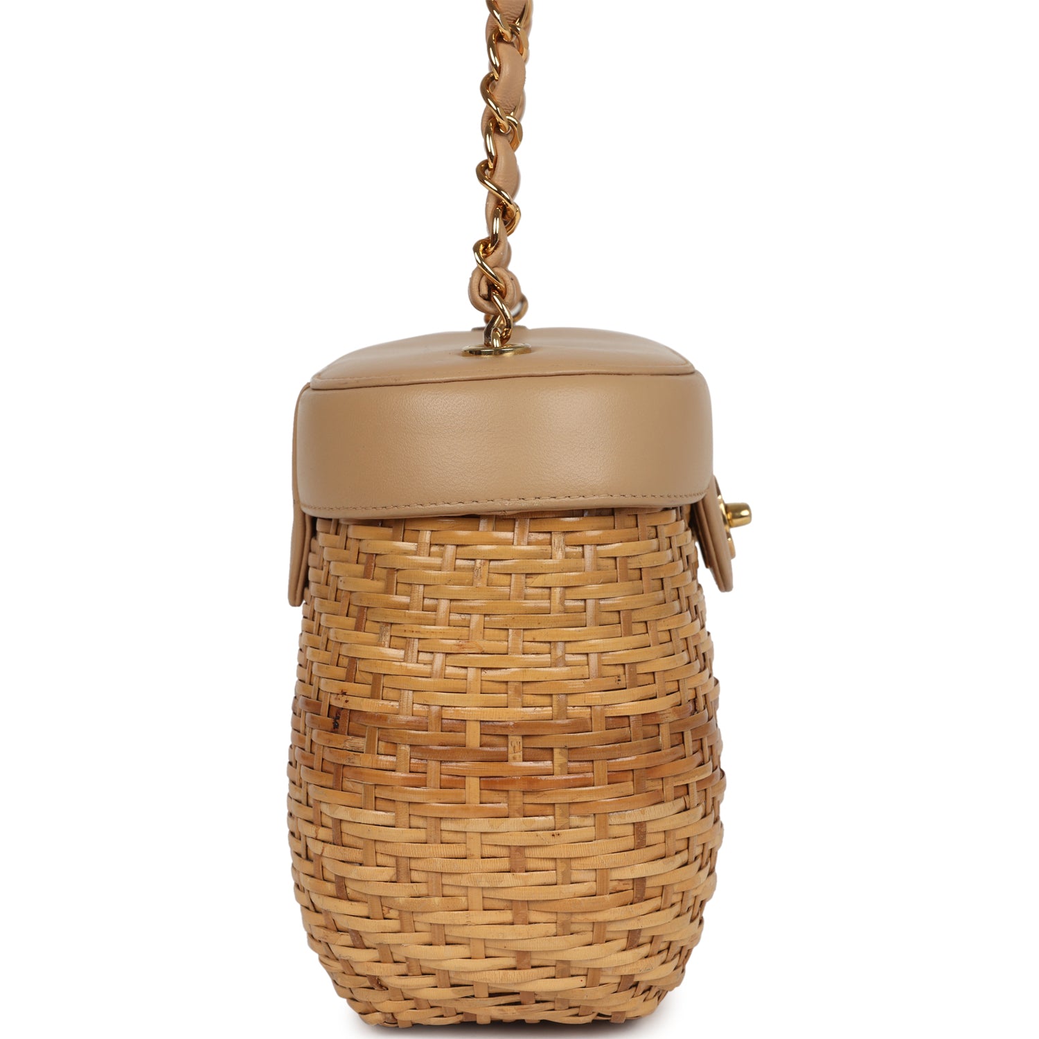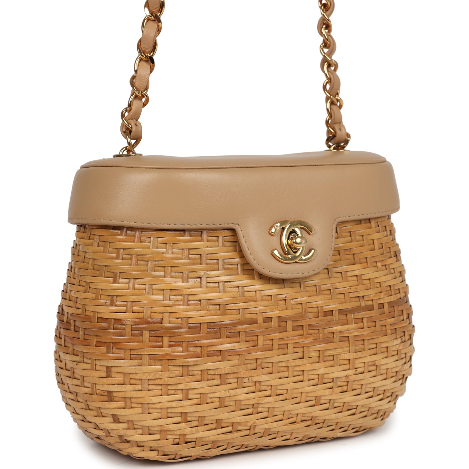 Vintage Chanel Basket Bag Beige Lambskin and Rattan Wicker Gold Hardware