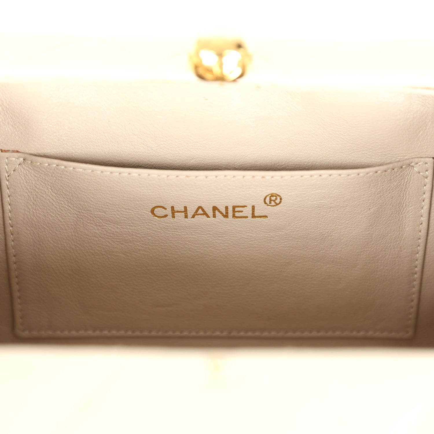 Vintage Chanel Box Clutch Bag Beige Lambskin Gold Hardware