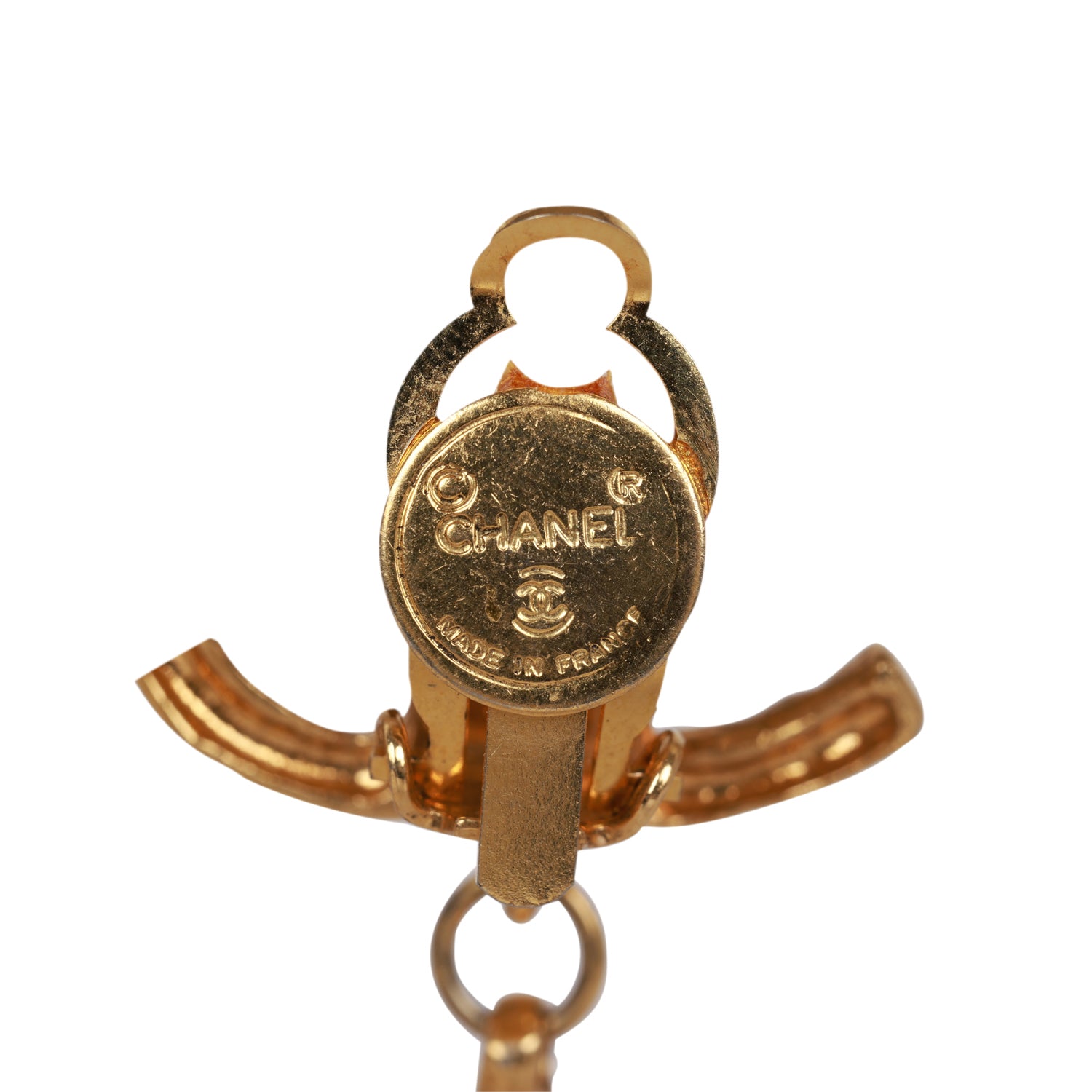 Vintage Chanel 24K Gold Plated Textured CC and Rhinestone Chandelier Clip Earrings