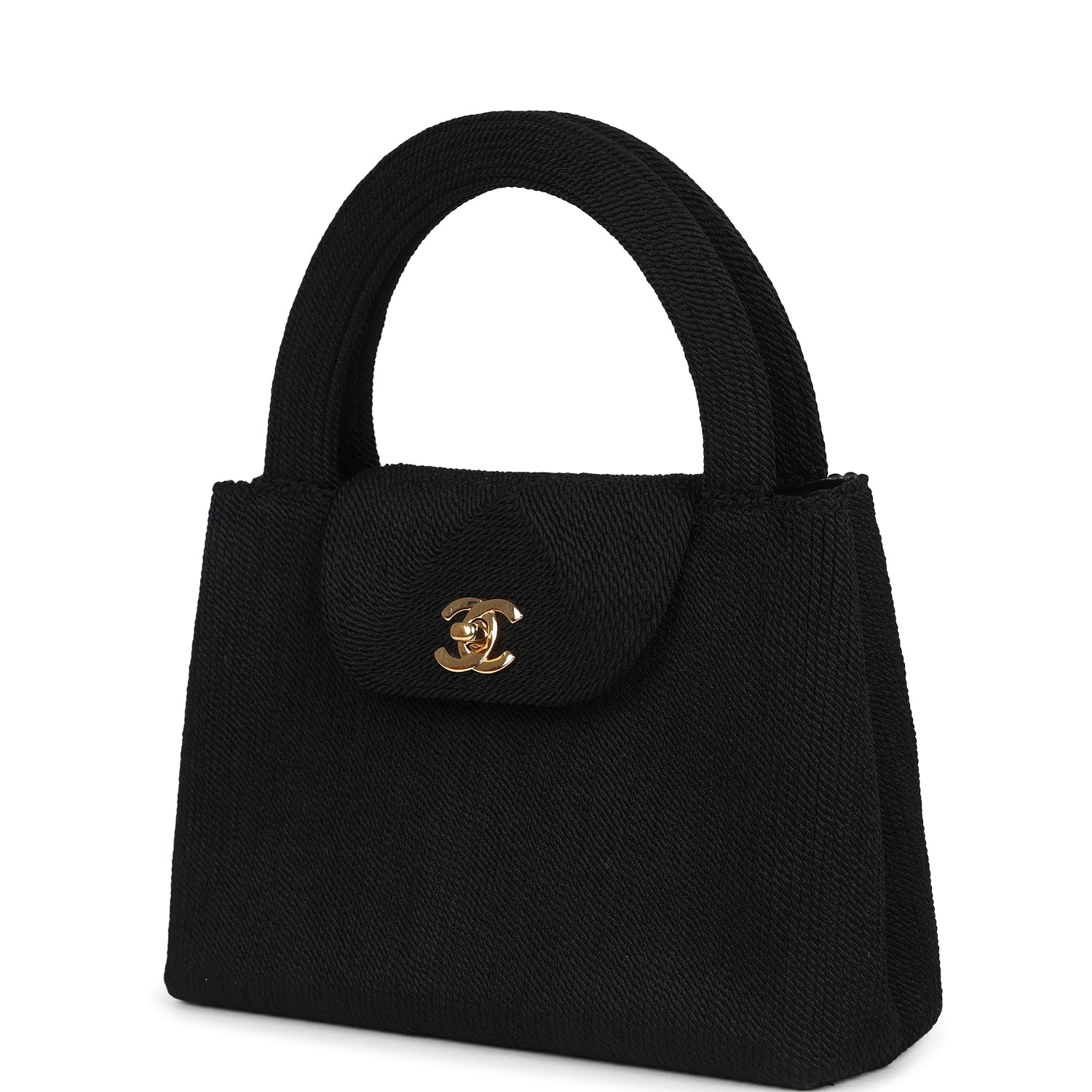 Vintage Chanel Large Kelly Rope Black Woven Gold Hardware