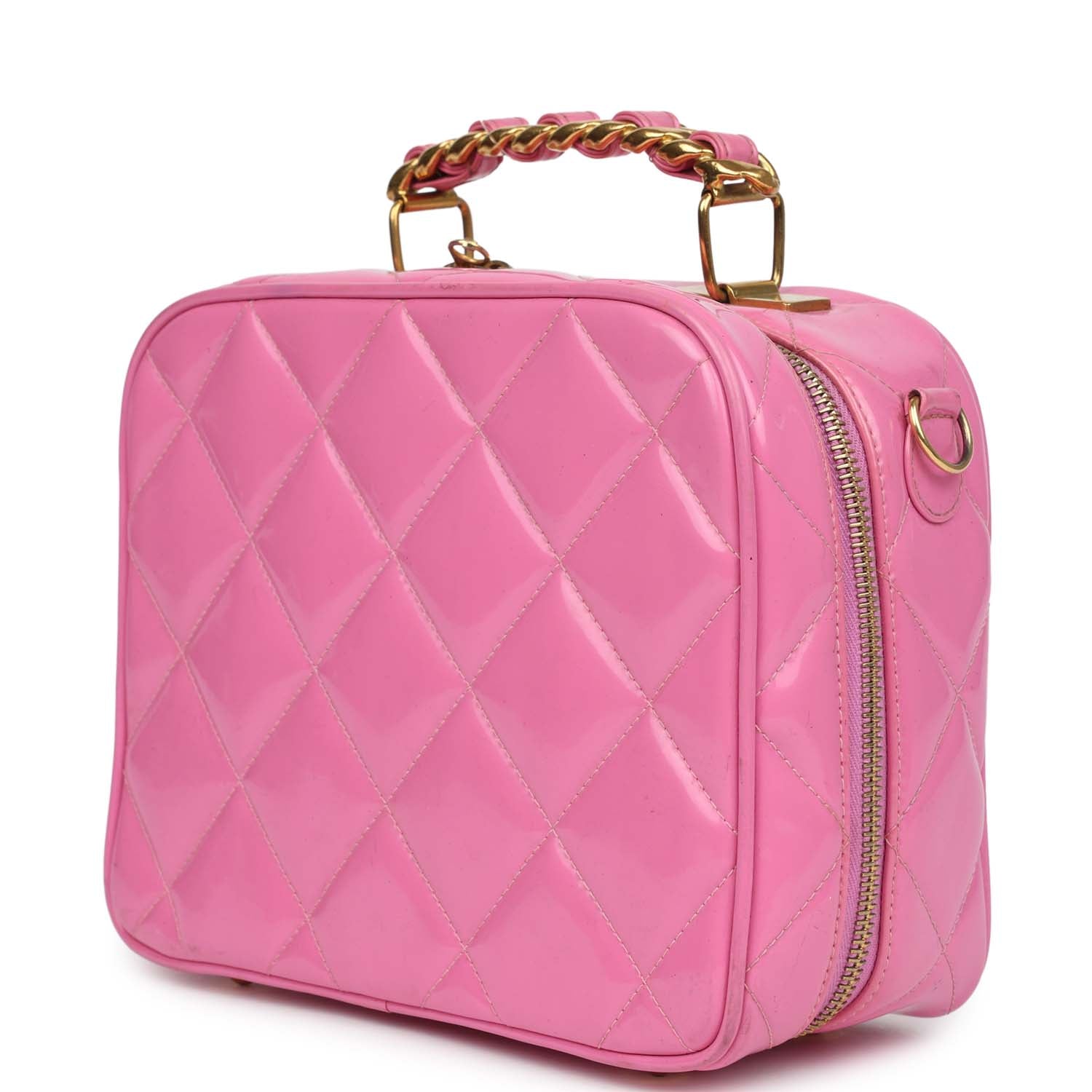Vintage Chanel Lunchbox Vanity Bag Pink Patent Gold Hardware
