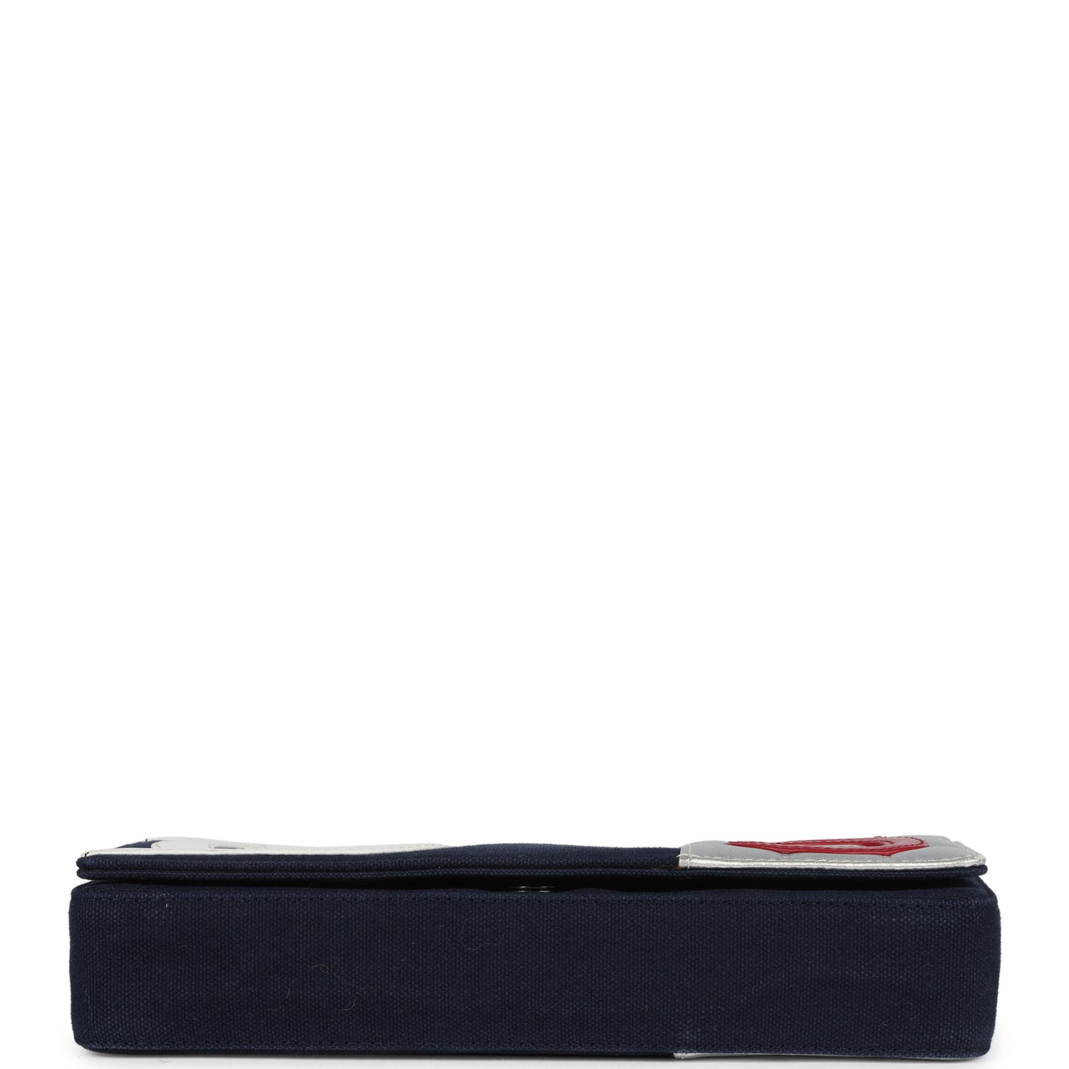Vintage Chanel N0.5 Chain Shoulder Bag Navy, Silver, Red Canvas Silver Hardware