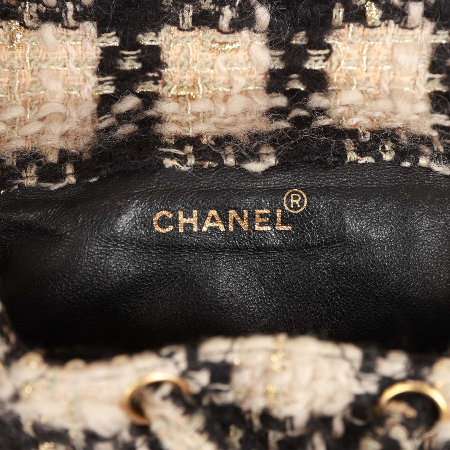 Vintage Chanel Duma Backpack Beige and Black Tweed Gold Hardware
