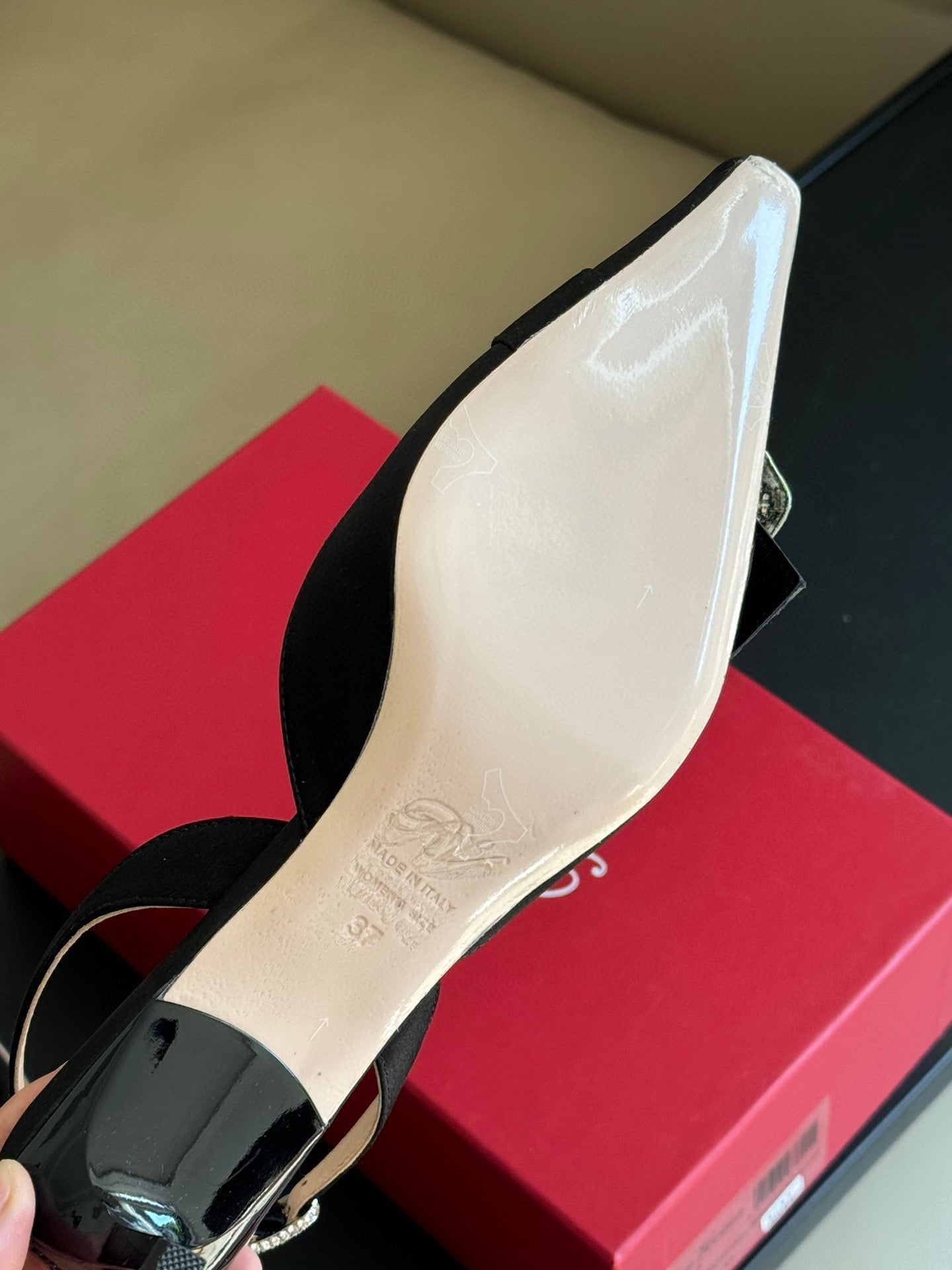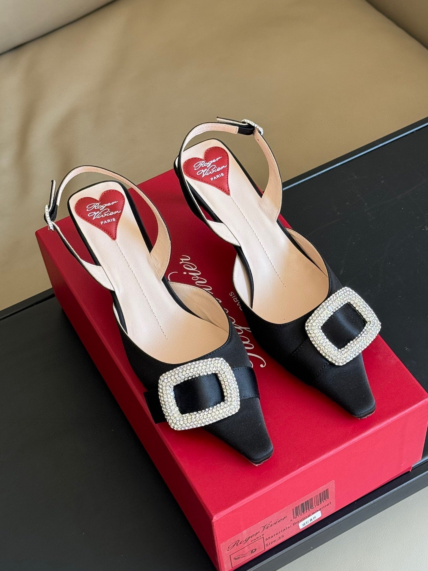 Viv Canard Slingback Pumps 55 in Black Satin