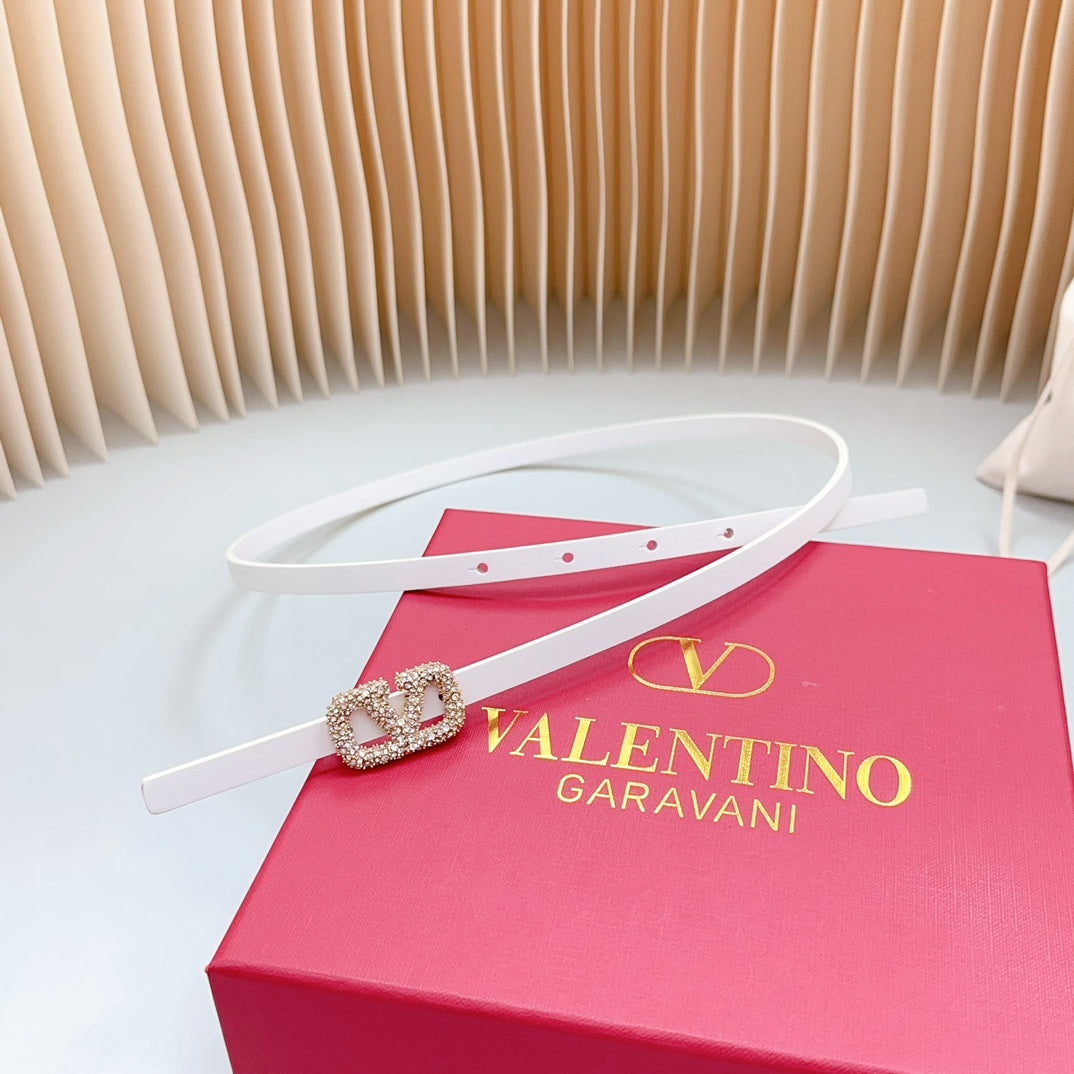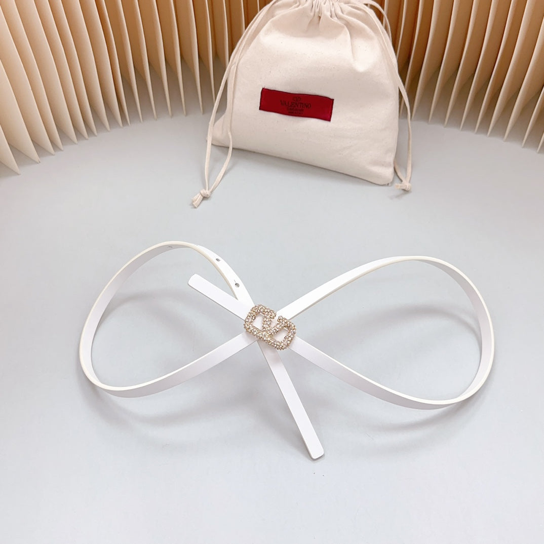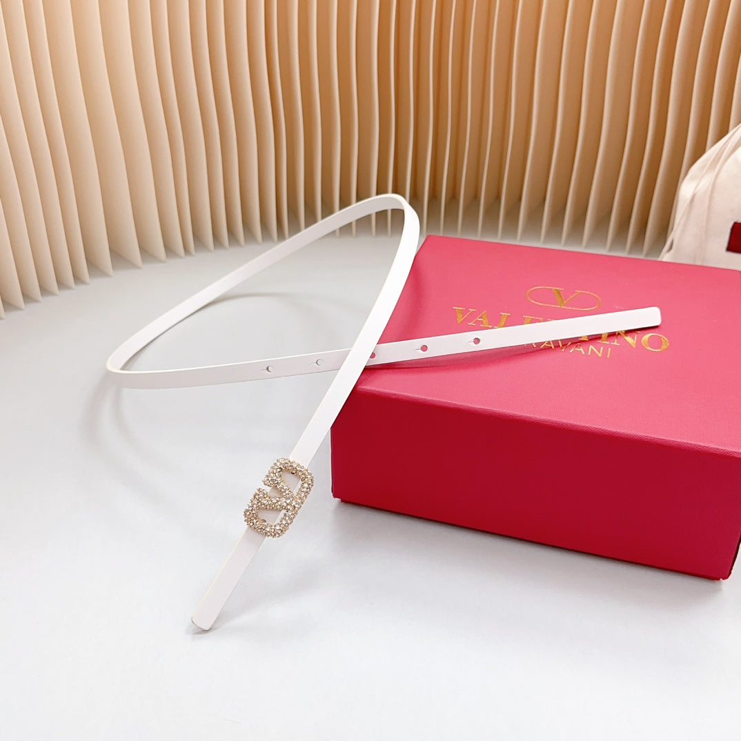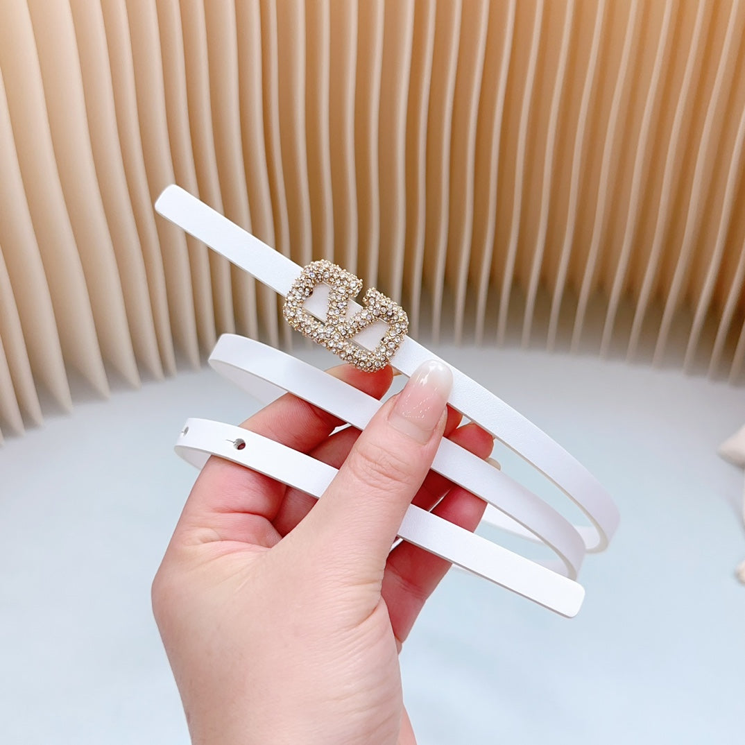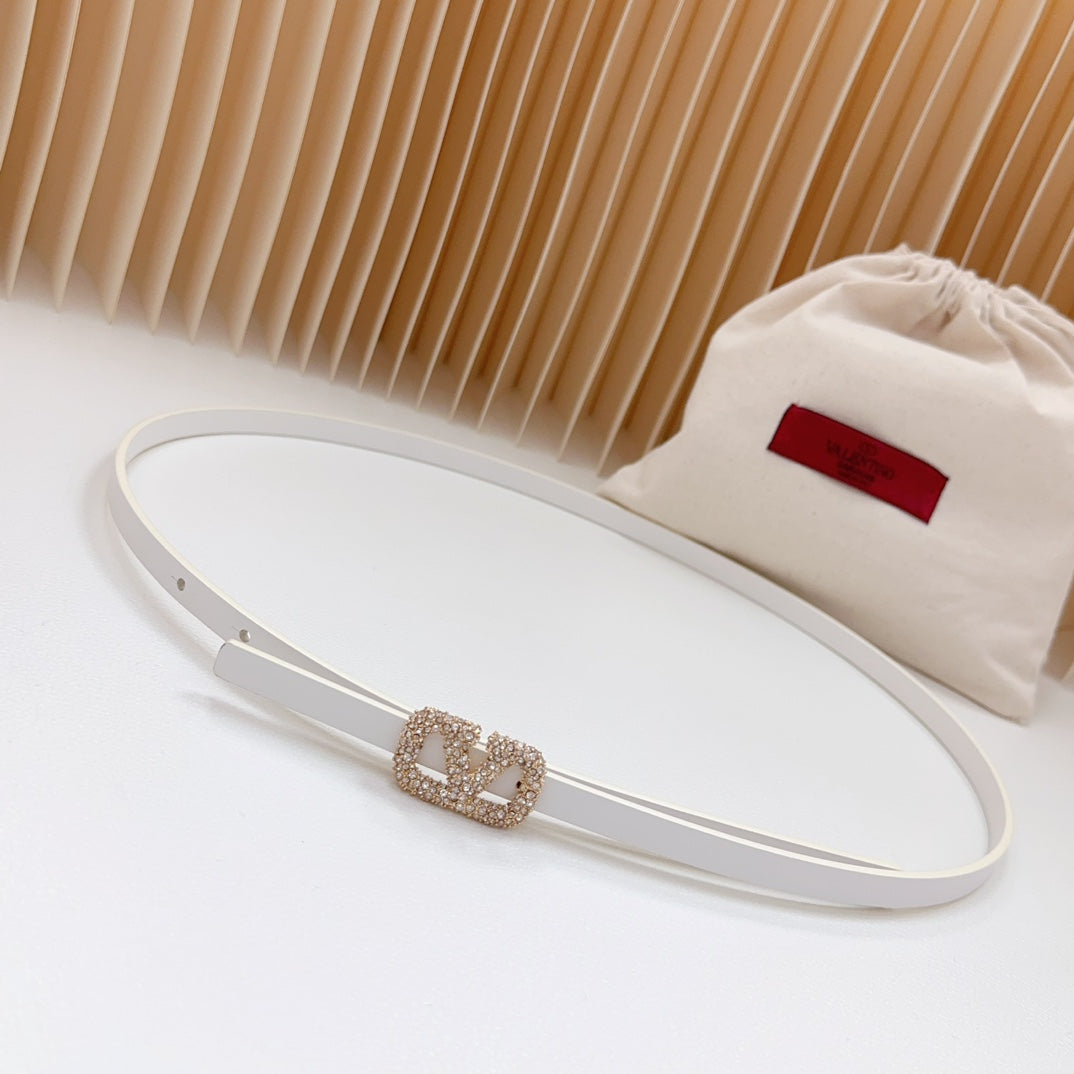 VL Belt 8mm Buckle Gold Diamond Leather White