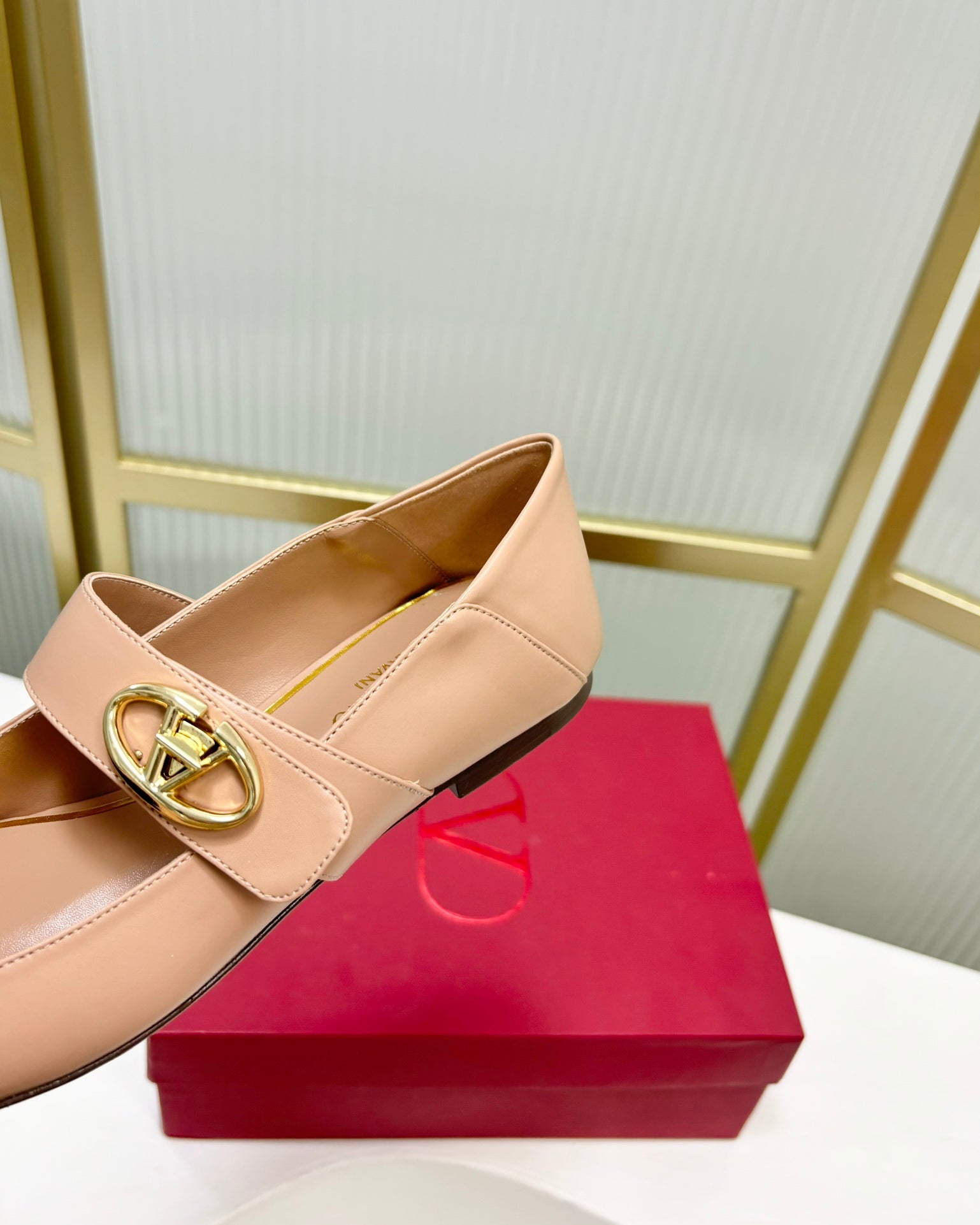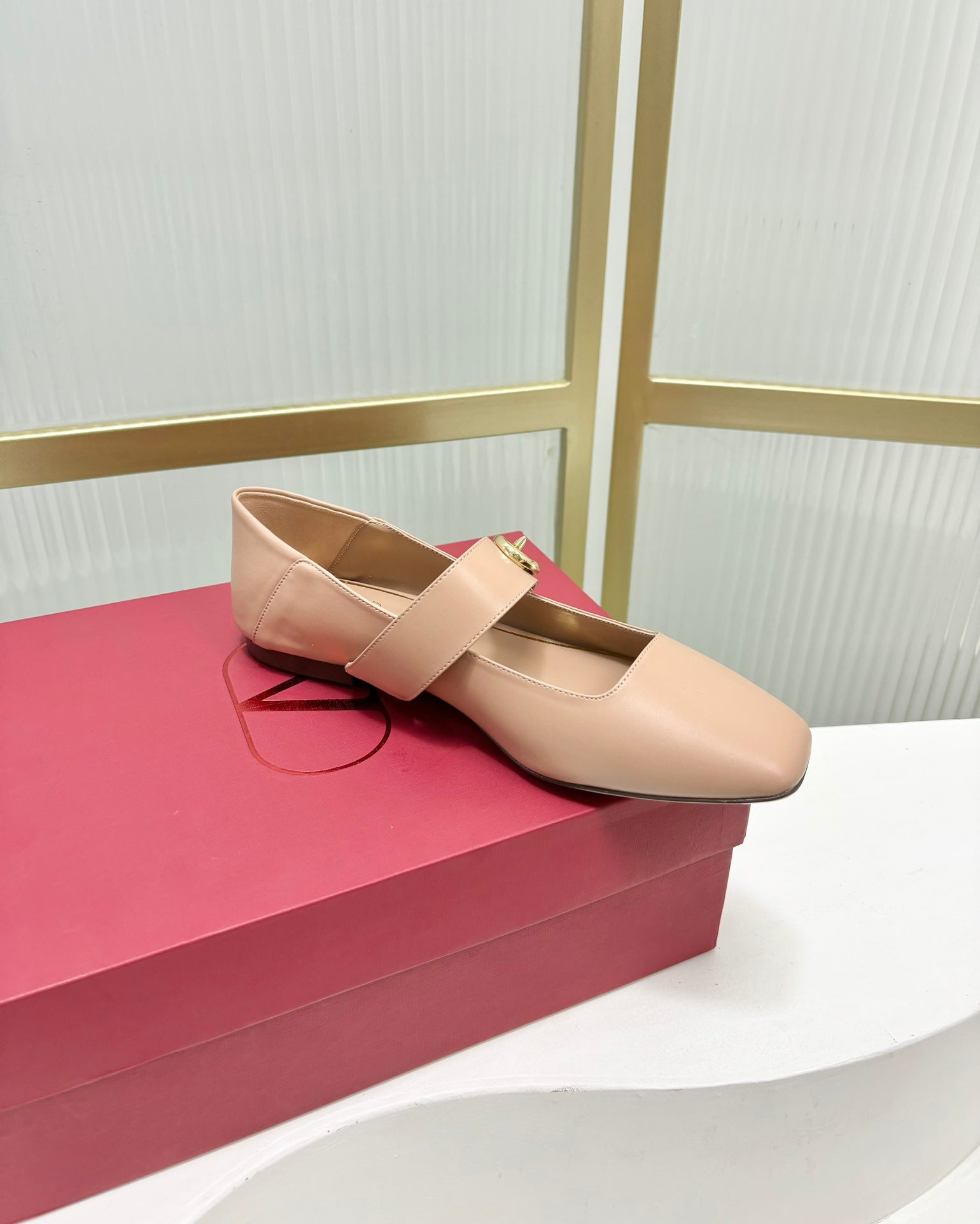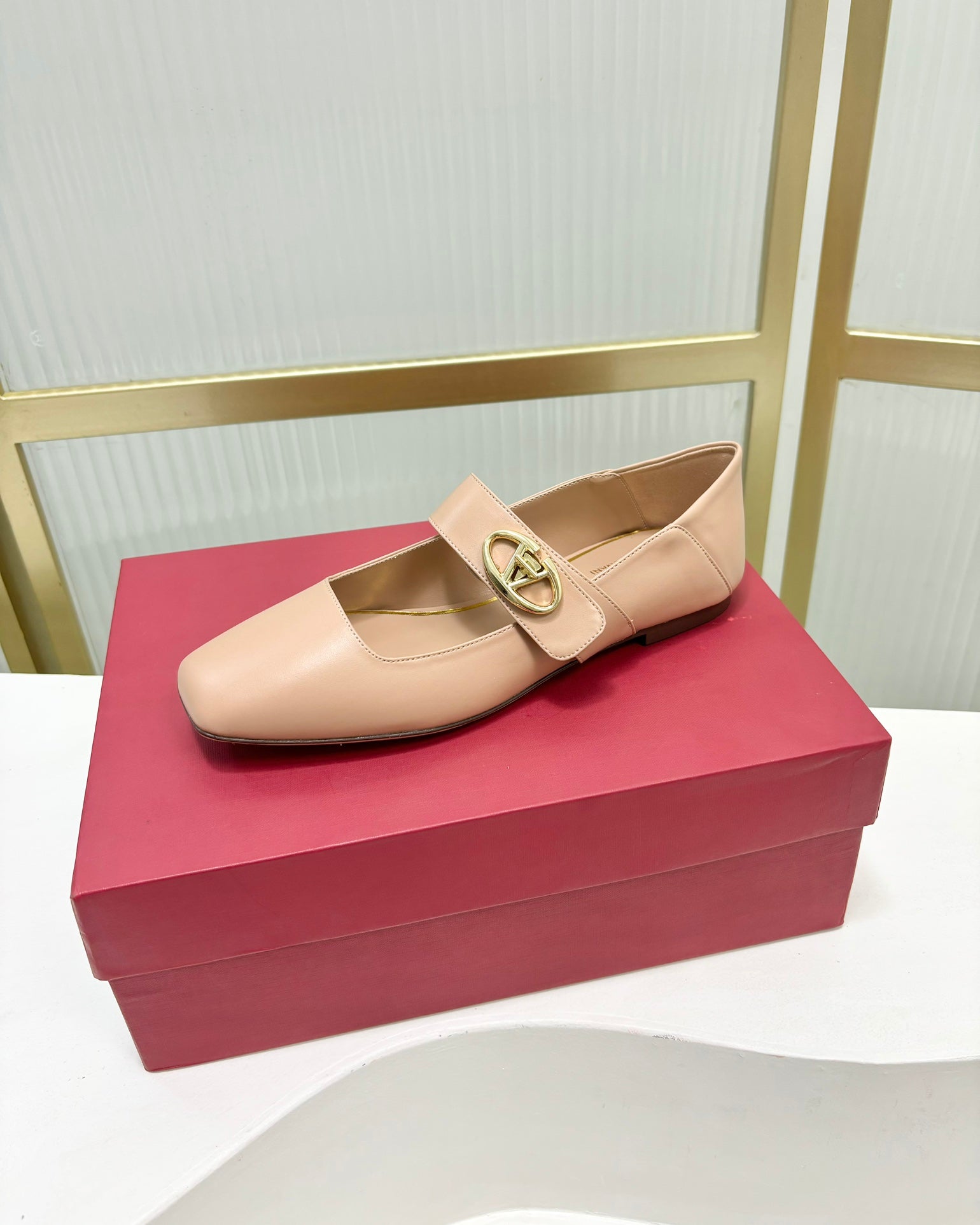 Vlogo Locker Mary-jane Ballerina In Beige Pink Cowhide 843667