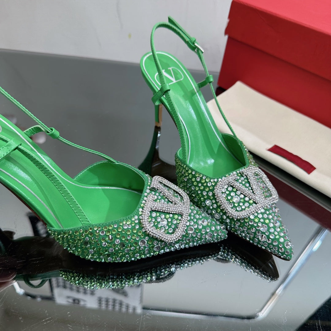 Vlogo Signature Slingback 70 Green Calfskin With Crystals