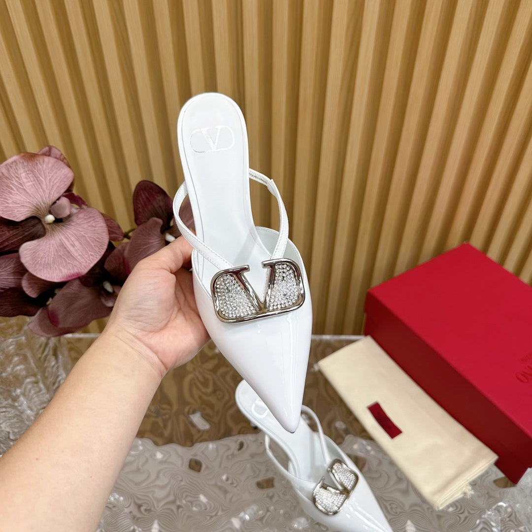 Vlogo Signature with Crystals Cut-Out Slingback Pump 70 White Calfskin