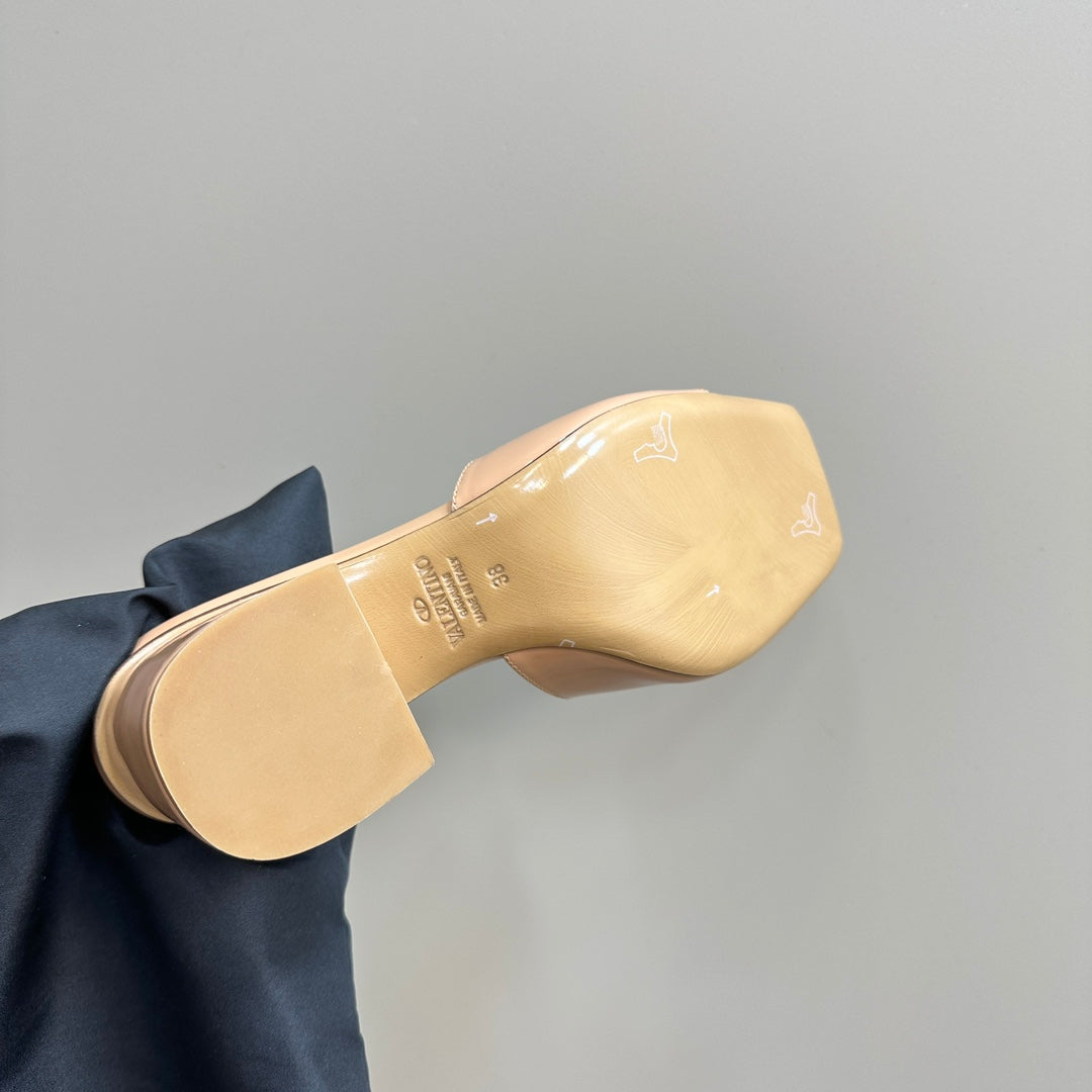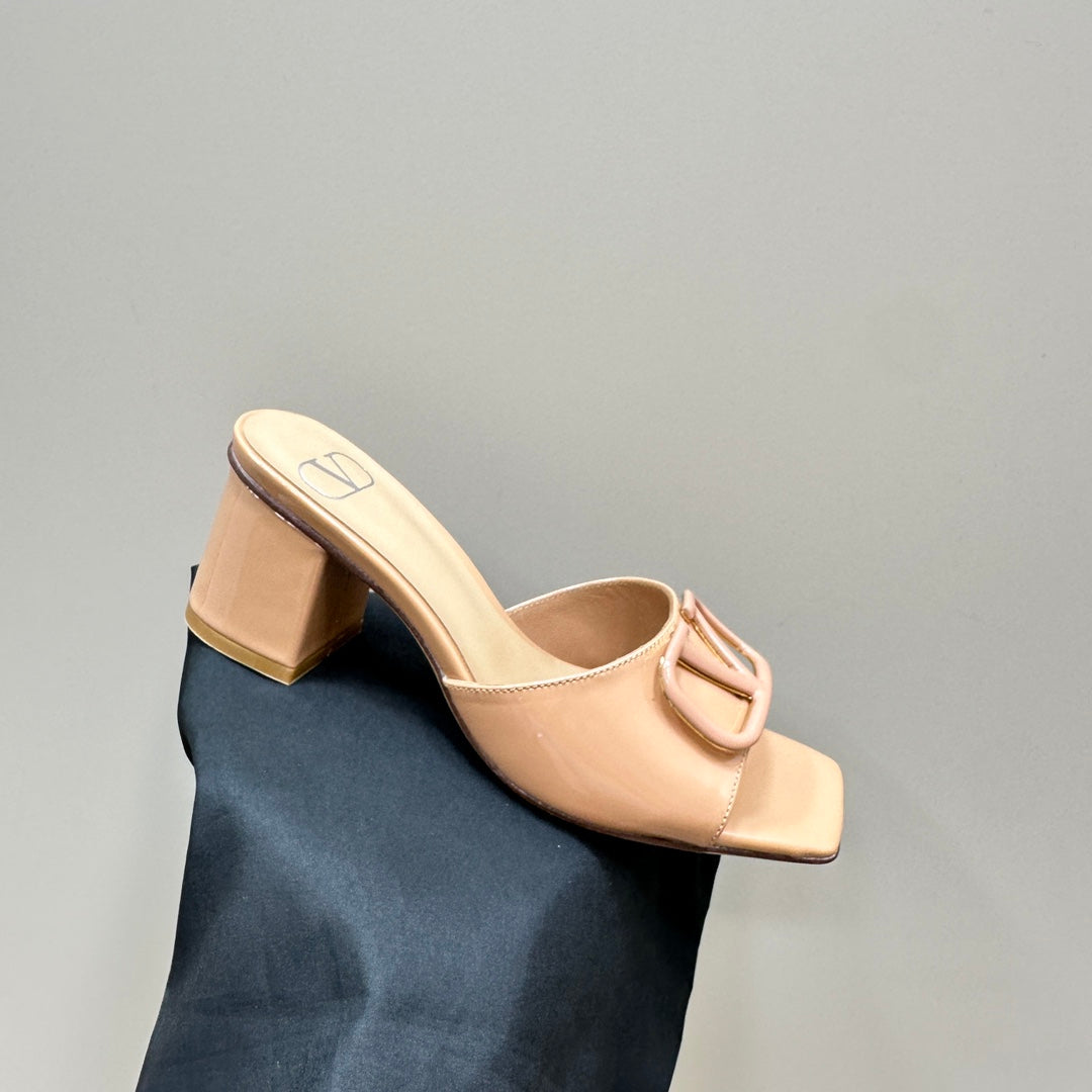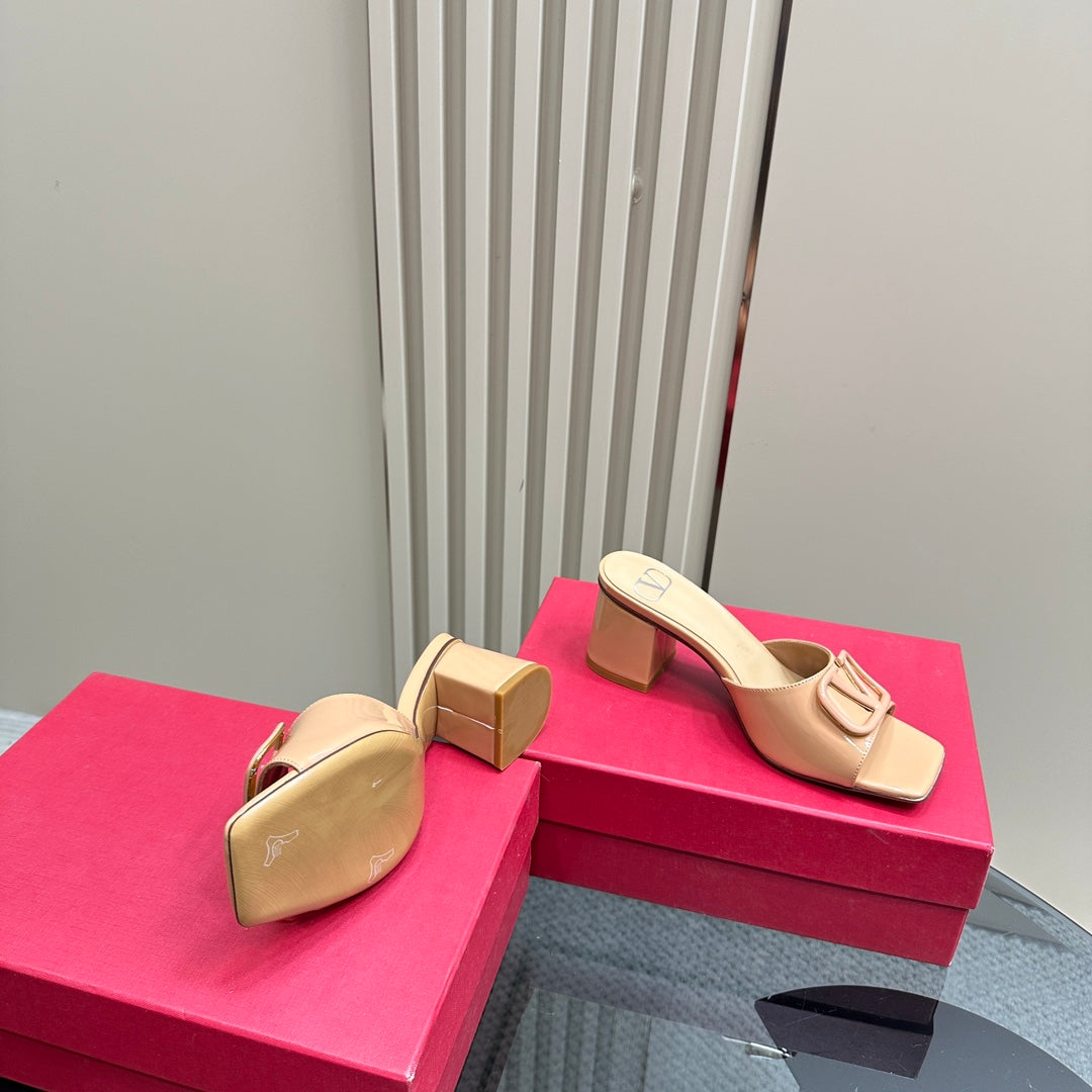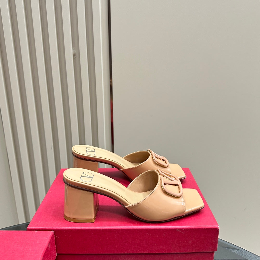 Vogo Signature High Shine Open Toe Sandals In Beige Glossy Lambskin 839821