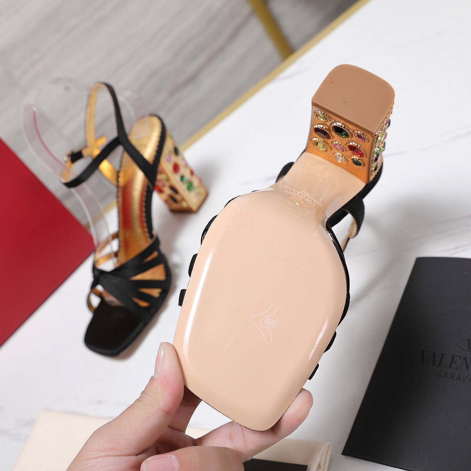 VT 2025 Diamond Heel Sandals Black Cowhide 289513