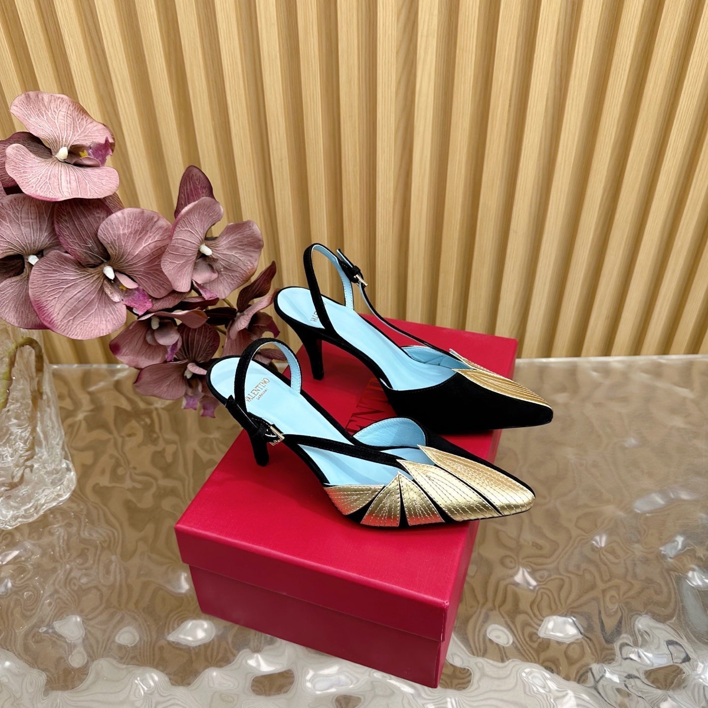 VT 25 Foil foliage Slingback Black Gold Cowhide
