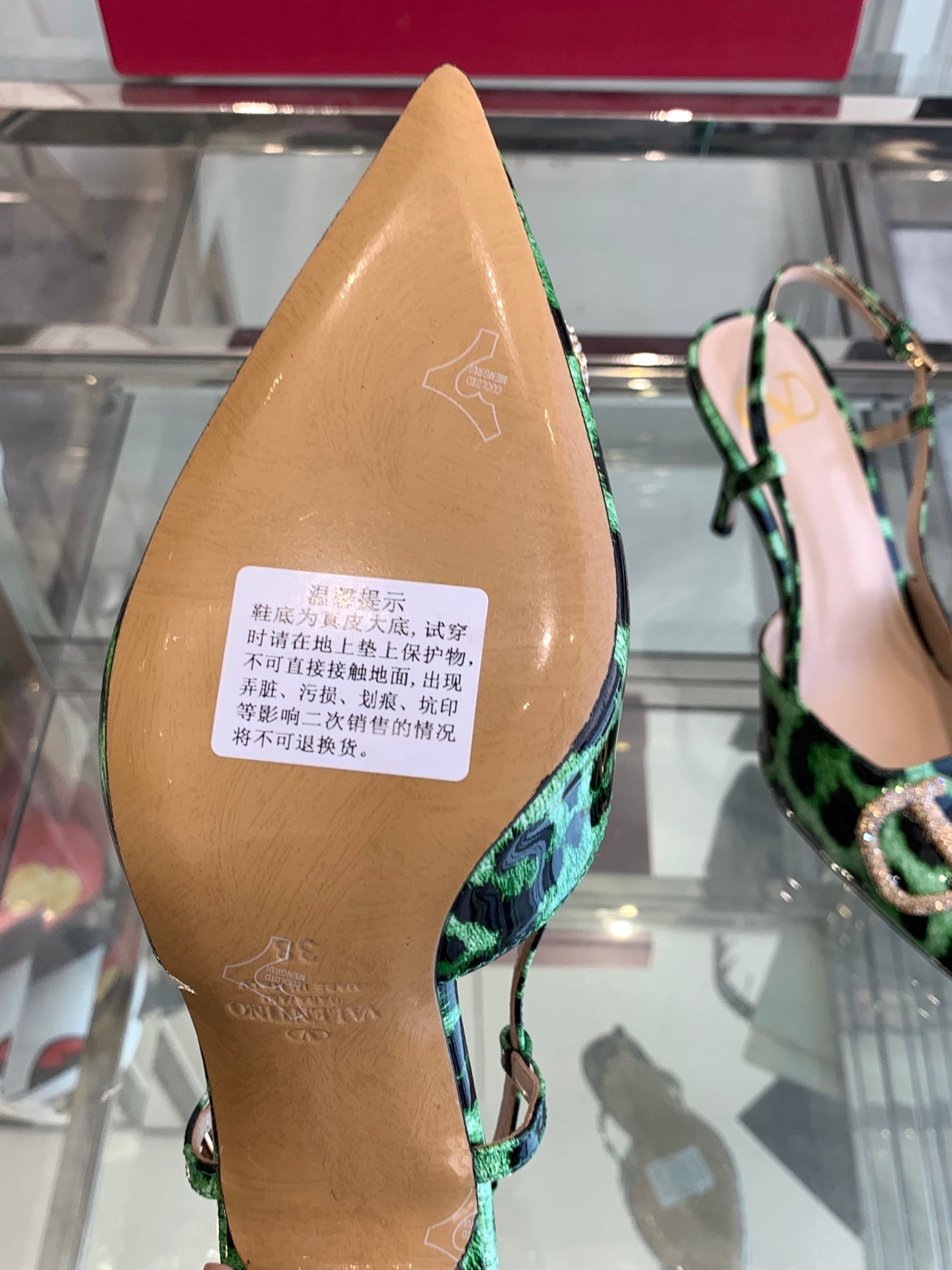 VT 25 High Heels Slingbacks Green Leopard Cowhide 292347