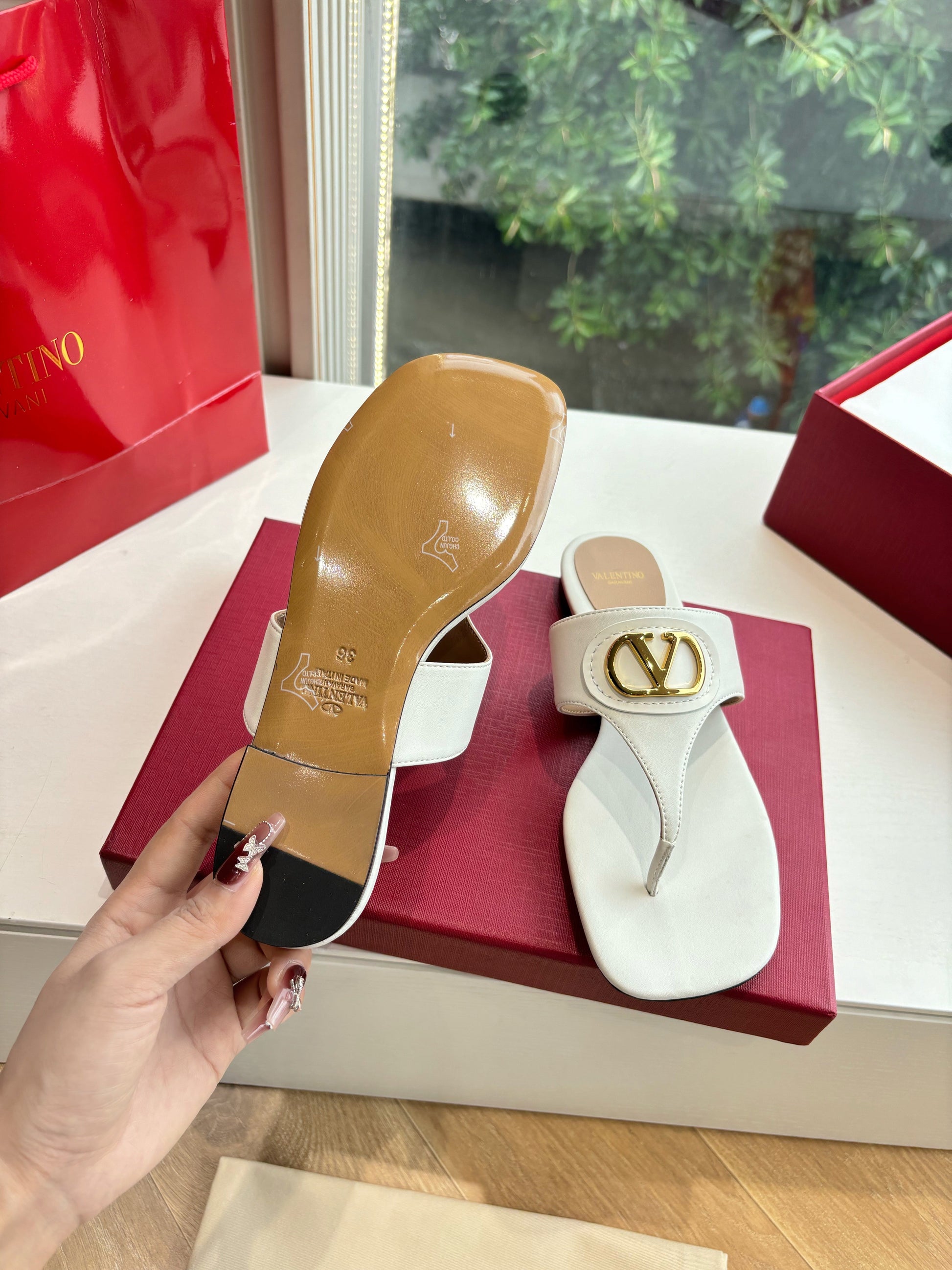 VT 25 Thong Sandals White Sheepskin Slide 358148