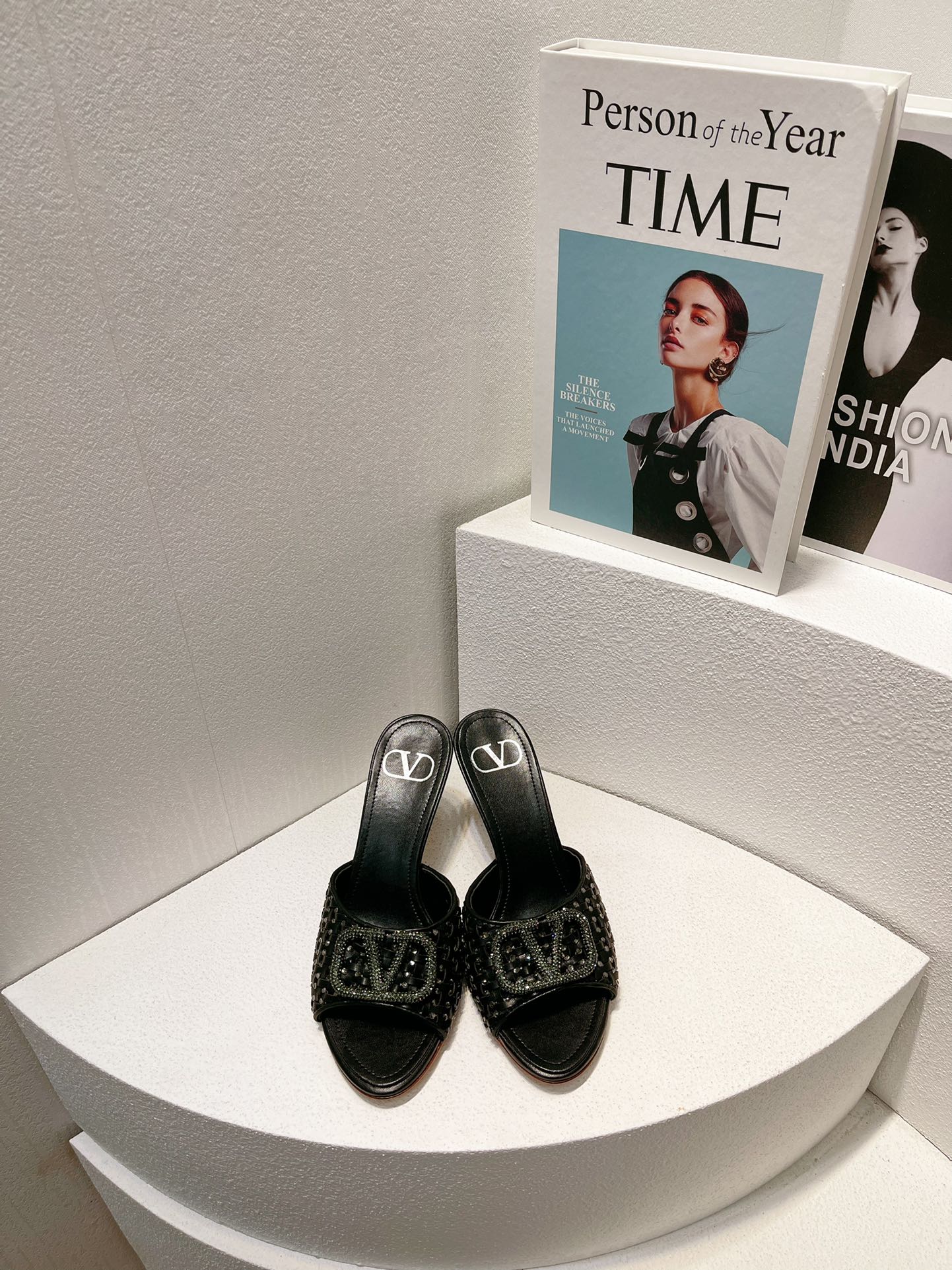 VT High Heeled Sandals Black Sheepskin 292787