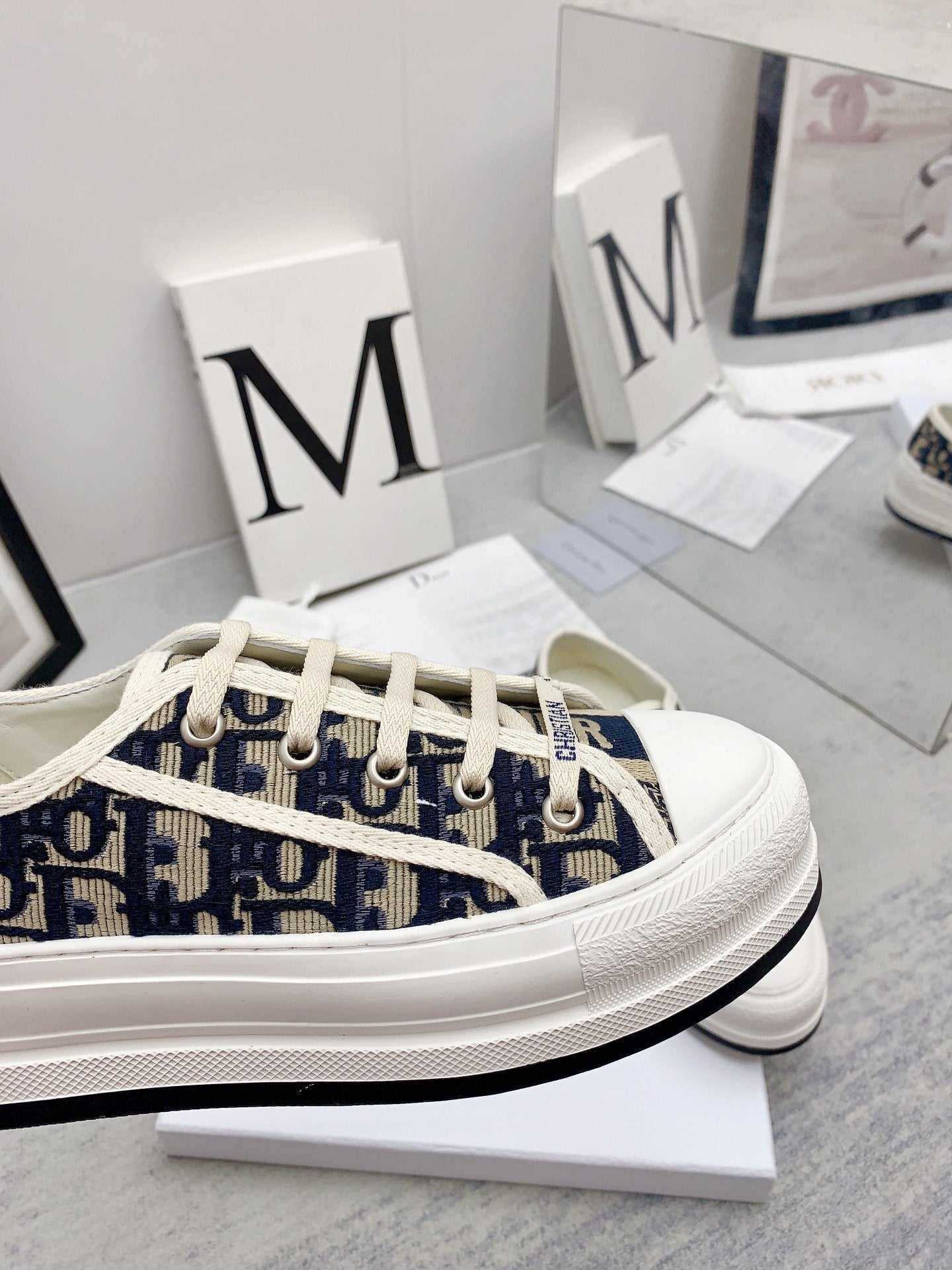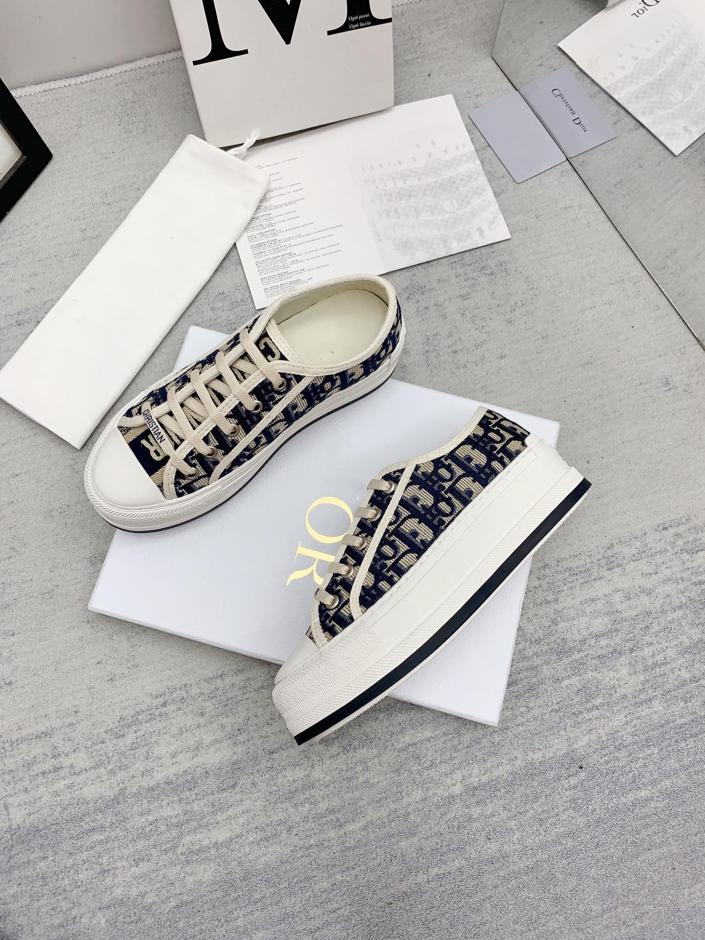 walkn 45 beige blue oblique embroidery canvas