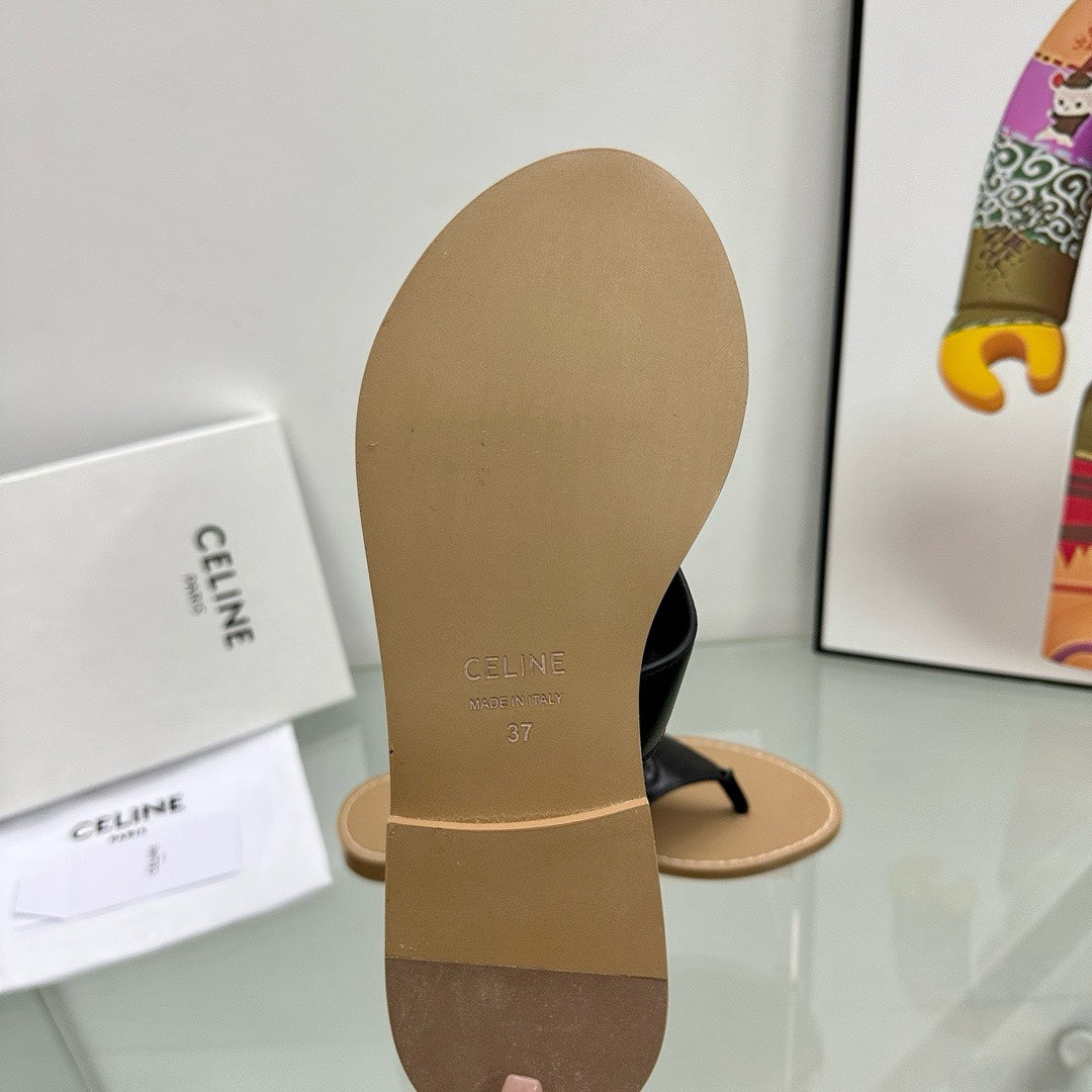WOMEN TRIOMPHE FLAT THONG IN CALFSKIN BLACK