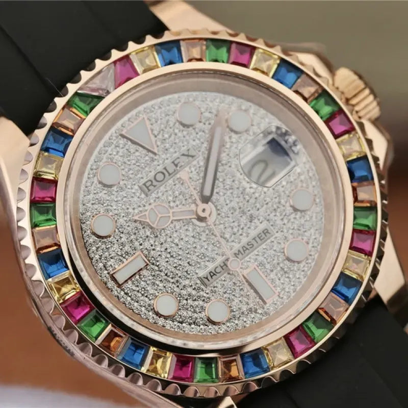 YACHT MASTER 1 GOLDEN DIAMOND BEZEL & DIAL RUBBER STRAP 40MM