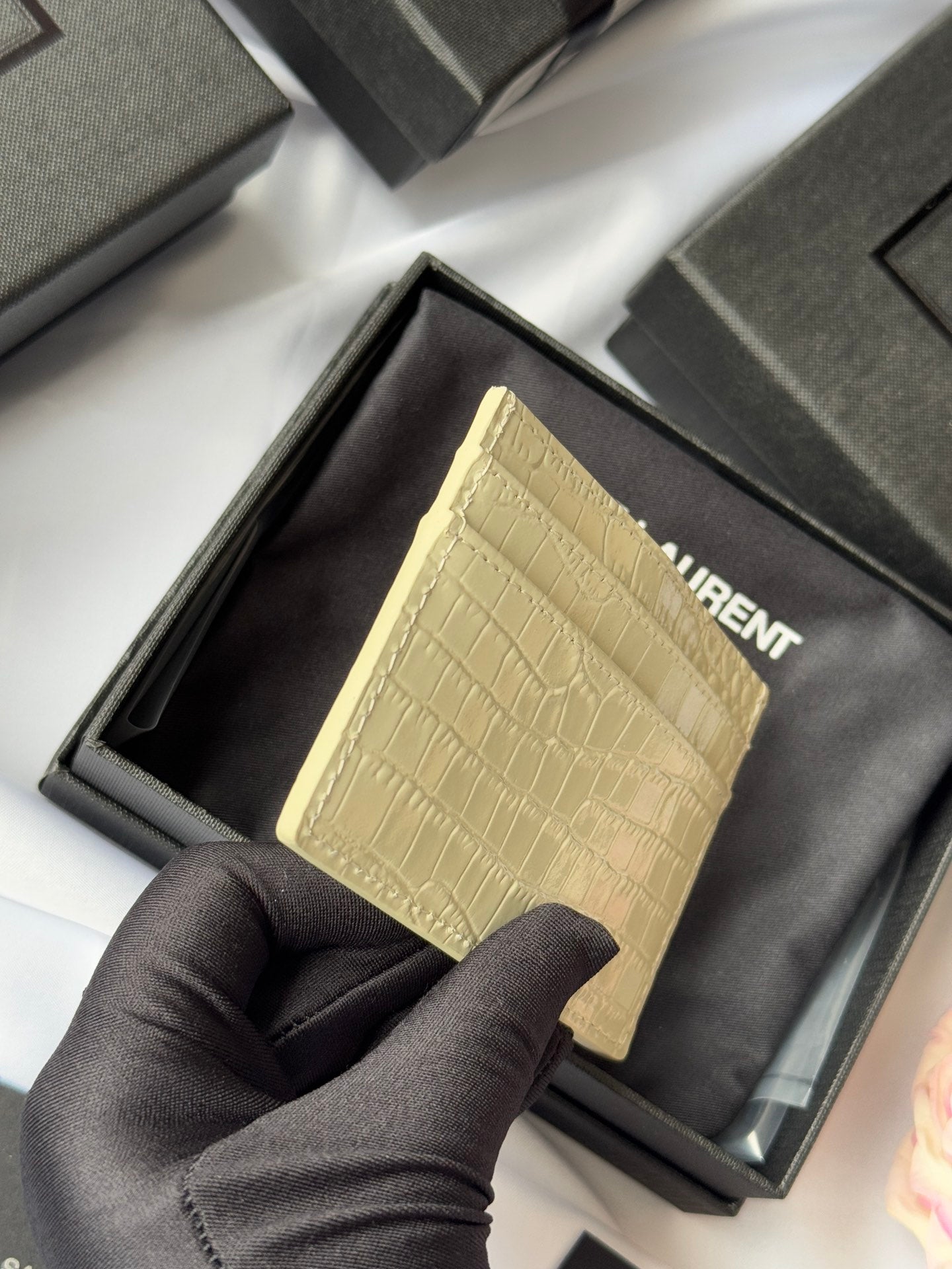 YSL Card Holder 10cm Wallet Cream Gold Crocodile Leather 240565